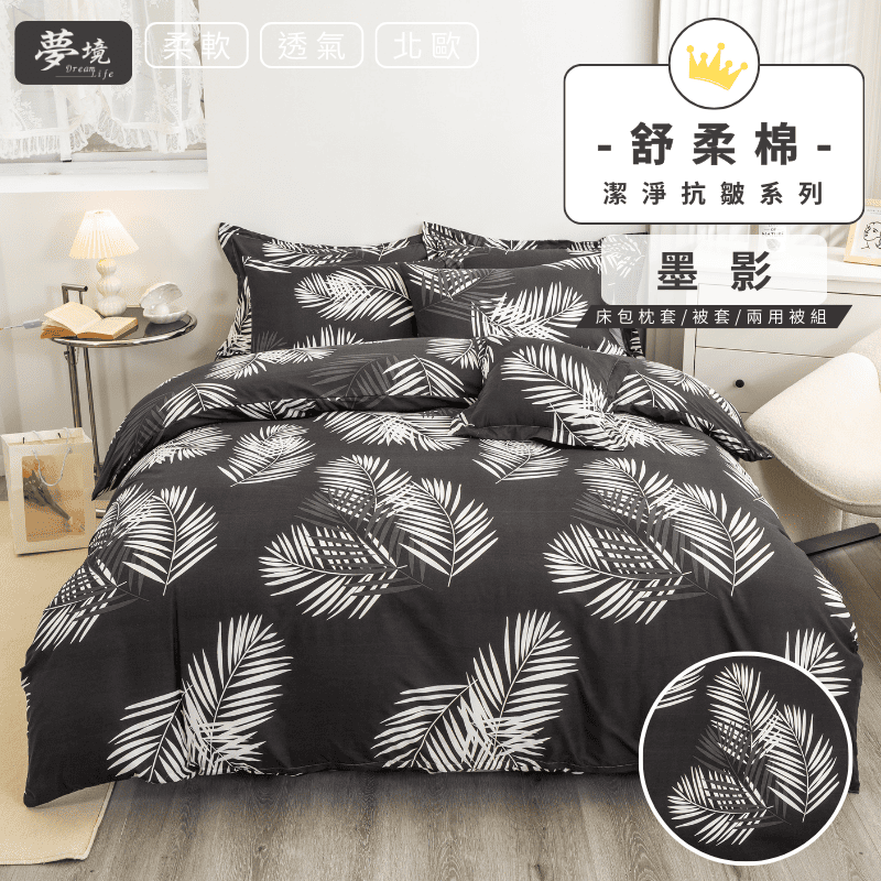 【夢境】MIT 舒柔棉床包組 床包枕套 被套 鋪棉兩用被組 - 墨影