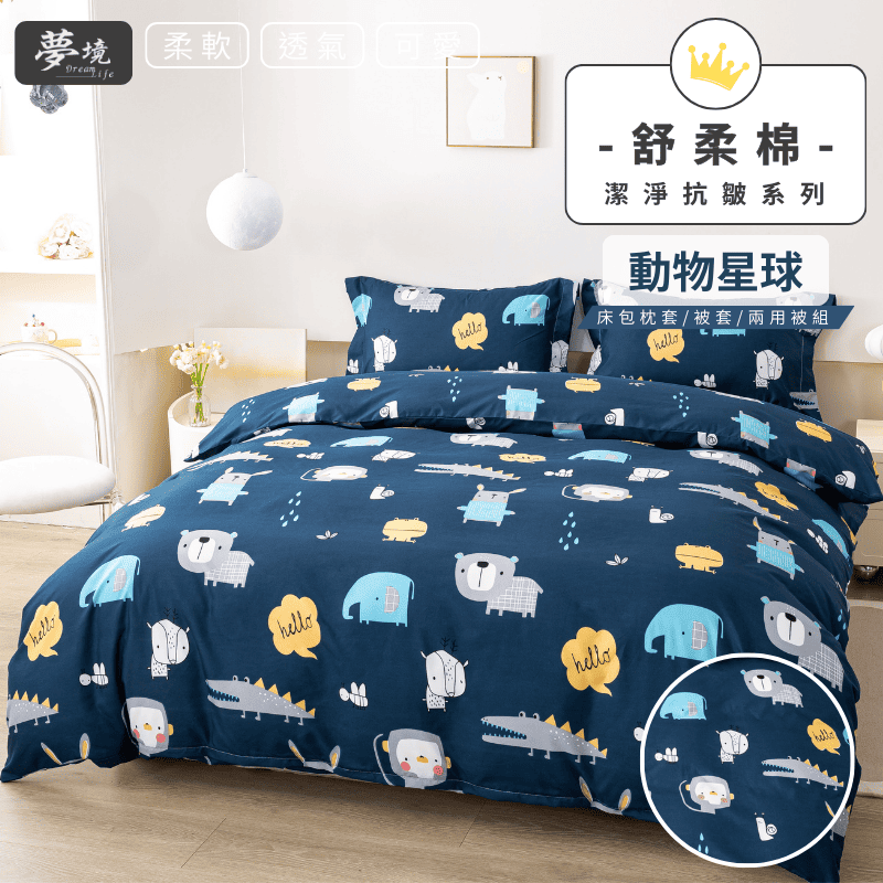 【夢境】MIT 舒柔棉床包組 床包枕套 被套 鋪棉兩用被組 - 動物星球