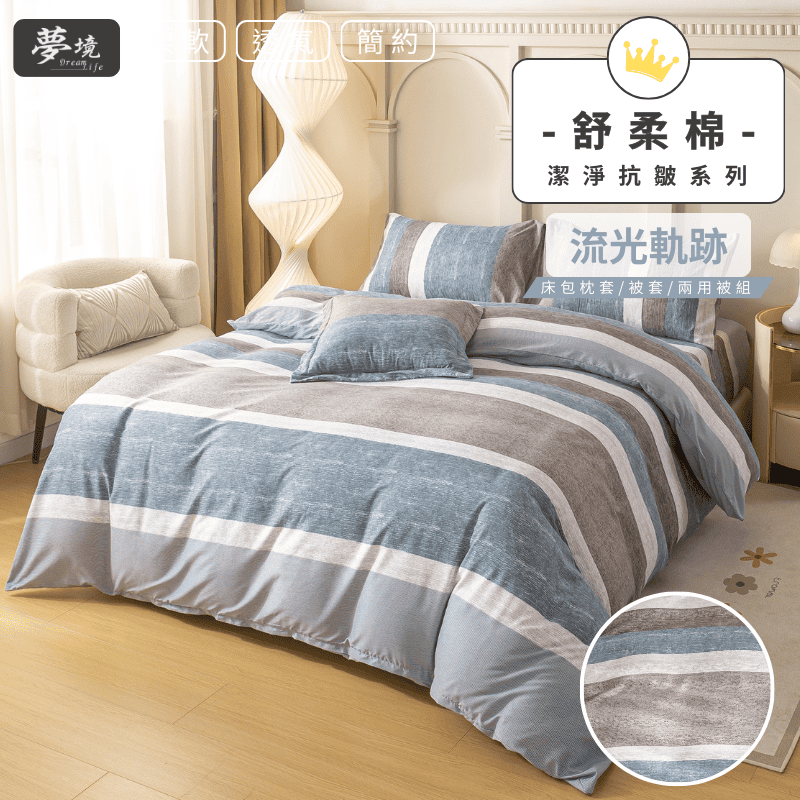 【夢境】MIT 舒柔棉床包組 床包枕套 被套 鋪棉兩用被組 - 流光軌跡