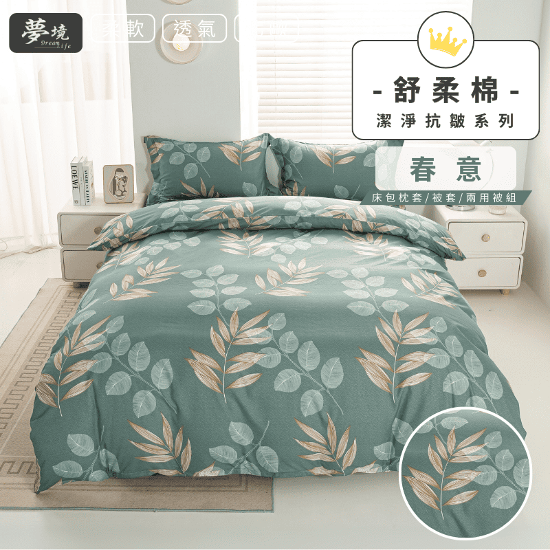 🔹雙人薄床包1+枕套2+薄被套1 組合 (5x6.2呎)