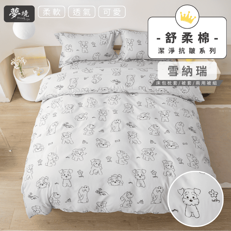 【夢境】MIT 舒柔棉床包組 床包枕套 被套 鋪棉兩用被組 - 雪納瑞
