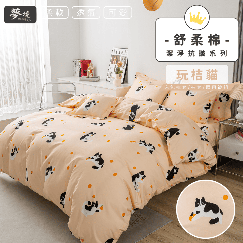 【夢境】MIT 舒柔棉床包組 床包枕套 被套 鋪棉兩用被組 - 玩桔貓
