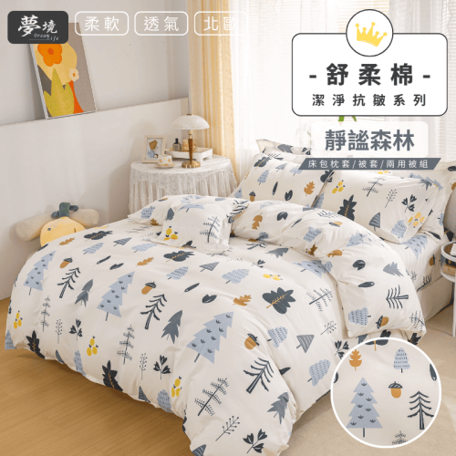 【夢境】MIT 舒柔棉床包組 床包枕套 被套 鋪棉兩用被 - 靜謐森林