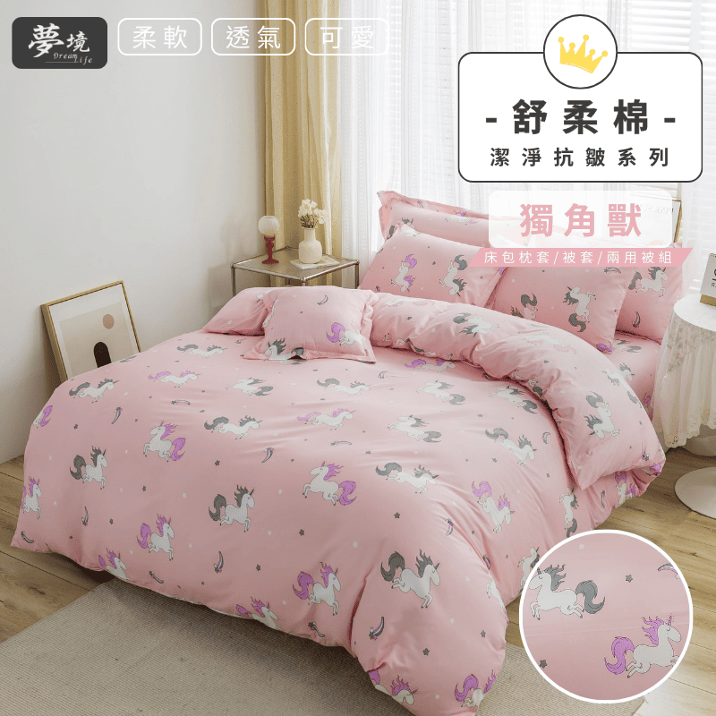 【夢境】MIT 舒柔棉床包組 床包枕套 被套 鋪棉兩用被組 - 獨角獸