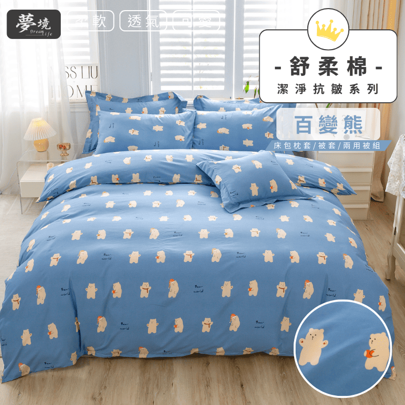 【夢境】MIT 舒柔棉床包組 床包枕套 被套 鋪棉兩用被組 - 百變熊