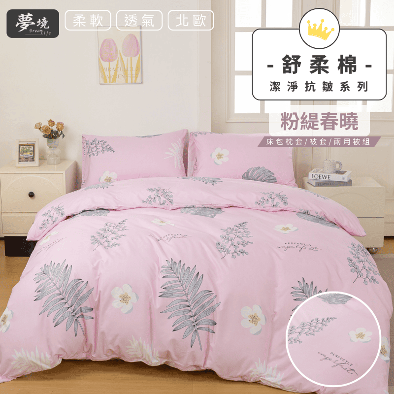 【夢境】MIT 舒柔棉床包組 床包枕套 被套 鋪棉兩用被組 - 粉緹春曉