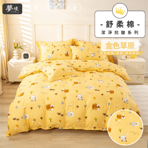 【夢境】MIT 舒柔棉床包組 床包枕套 被套 鋪棉兩用被組 - 金色草原