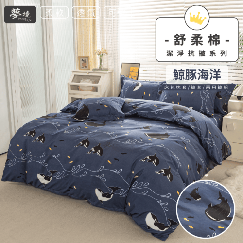 【夢境】MIT 舒柔棉床包組 床包枕套 被套 鋪棉兩用被組 - 鯨豚海洋