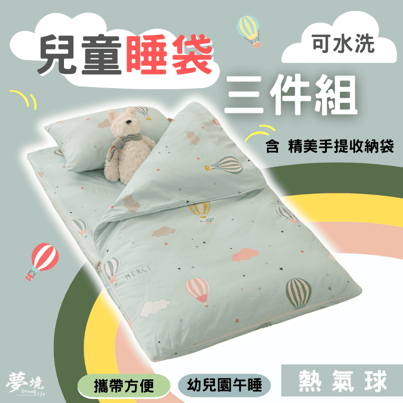 【夢境】舒柔棉 x 兒童睡袋 三件組 幼稚園午睡首選 舒柔棉/睡墊/睡袋/2-8歲/快速收納/方便攜帶 - 熱氣球