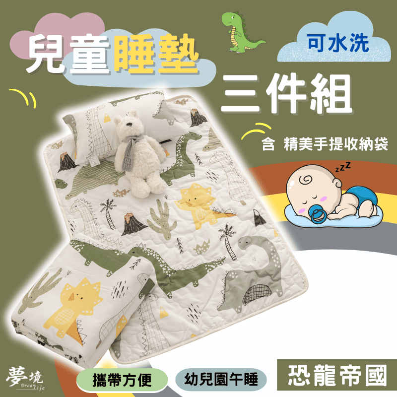 【夢境】兒童睡墊 三件組 幼稚園午睡首選 舒柔棉/睡墊/睡袋/2-8歲/快速收納/方便攜帶 - 恐龍帝國