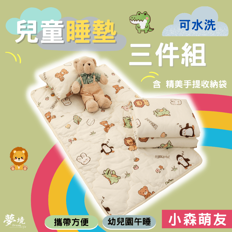 【夢境】兒童睡墊 三件組 幼稚園午睡首選 舒柔棉/睡墊/睡袋/2-8歲/快速收納/方便攜帶 - 小森萌友