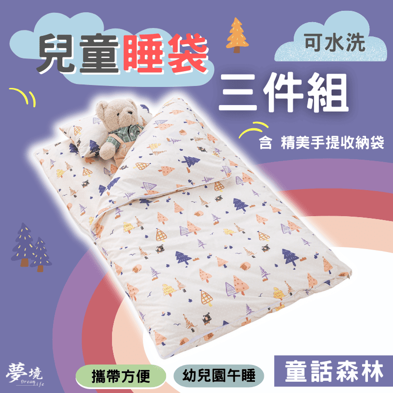 【夢境】兒童睡袋 三件組 幼稚園午睡首選 舒柔棉/睡墊/睡袋/2-8歲/快速收納/方便攜帶 - 童話森林