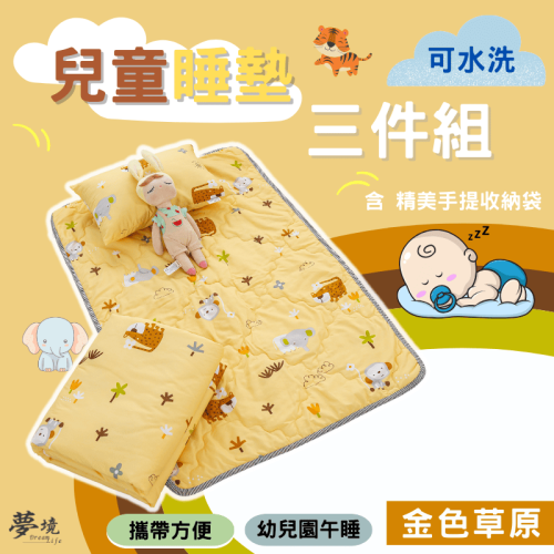 【夢境】兒童睡墊 三件組 幼稚園午睡首選 舒柔棉/睡墊/睡袋/2-8歲/快速收納/方便攜帶 - 金色草原