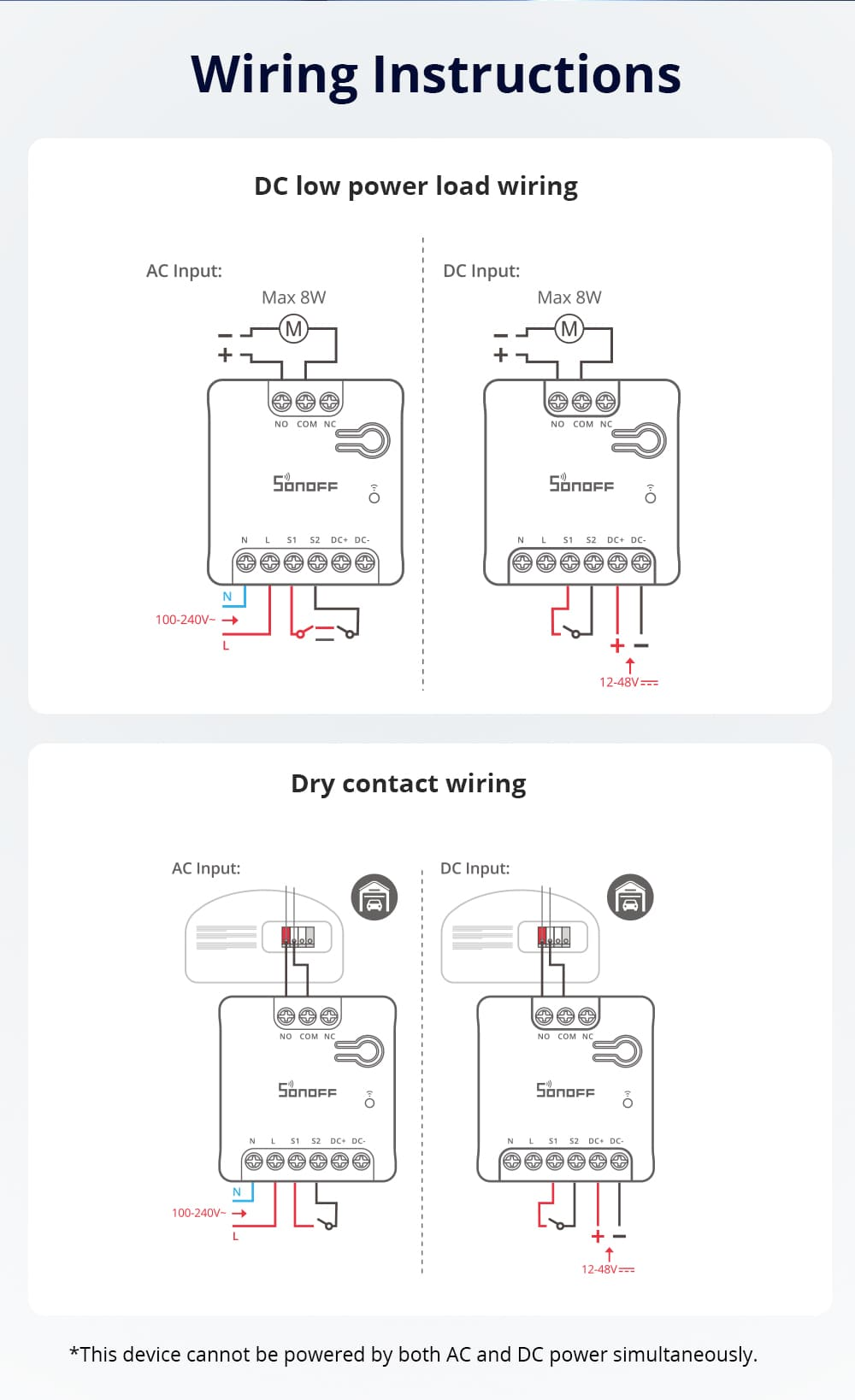 灌溉系統電磁閥 電動窗簾馬達 小型電動閘門 低壓水泵等 最大負載為 8W。重要提醒:MINI-D 的輸出端子僅支援 DC 負載,絕對禁止直接接入 AC 負載,否則會損壞設備並有安全風險!