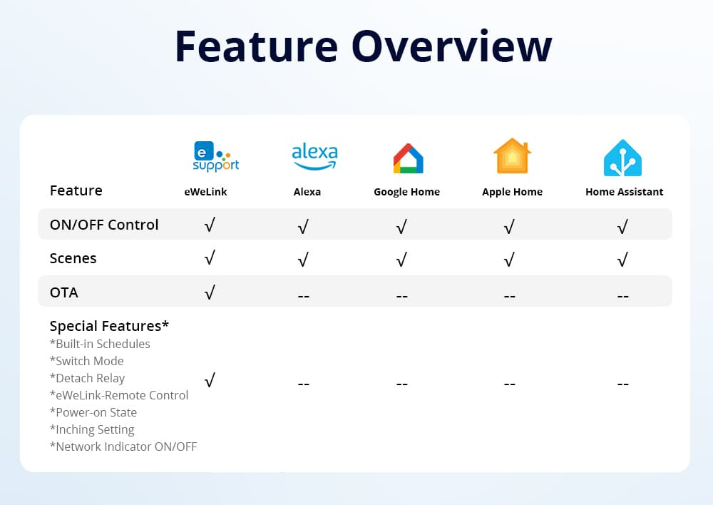 使用 eWeLink App:完全不需要任何網關,直接配對 Wi-Fi 即可。 使用 Apple HomeKit、Google Home 等 Matter 平台:需搭配對應的 Matter 相容網關(例如 Apple TV、HomePod、Google Nest Hub、Alexa Echo 第4代等)。