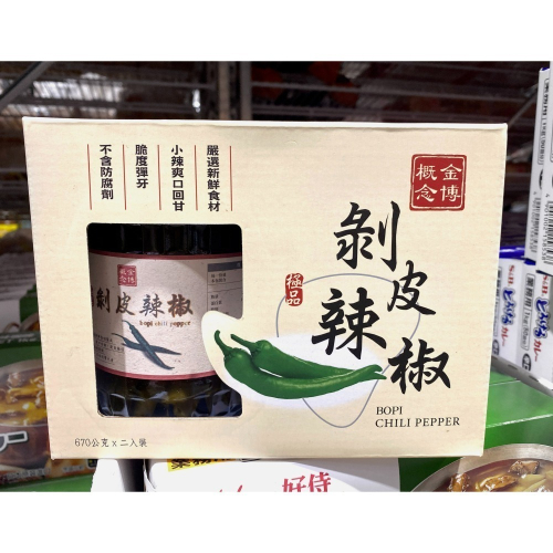 品名:金博概念 極品剝皮辣椒 670公克 X 2瓶