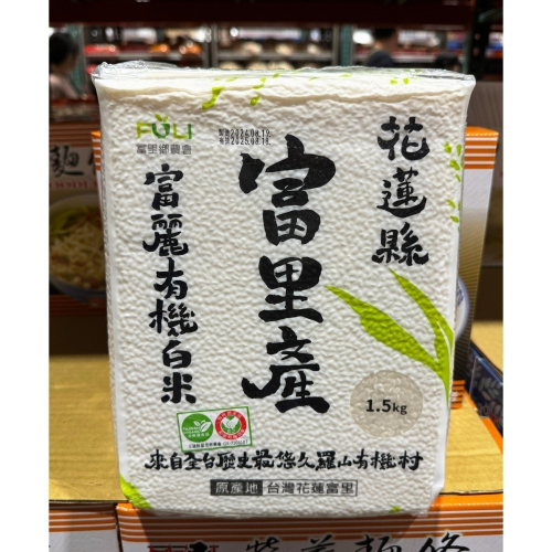 台中小蜜蜂美式賣場代購 (開發票統編) 富里 富麗有機白米 有機白米 白米 有機米 台灣米 1.5公斤 X 3入