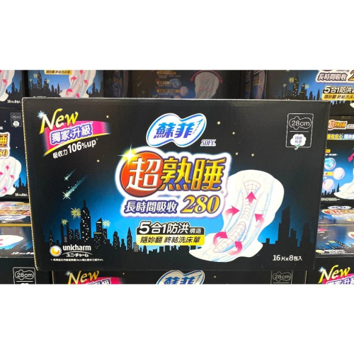 台中小蜜蜂美式賣場代購 (開發票統編) 蘇菲 超熟睡長時間吸收夜用衛生棉 28公分 夜用 衛生棉 16片8包
