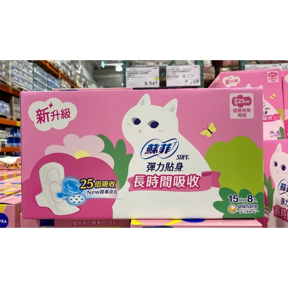 台中小蜜蜂美式賣場代購 (開發票統編) 蘇菲 彈力貼身日用潔翼 日用 潔翼 衛生棉 23cm 15片x8包