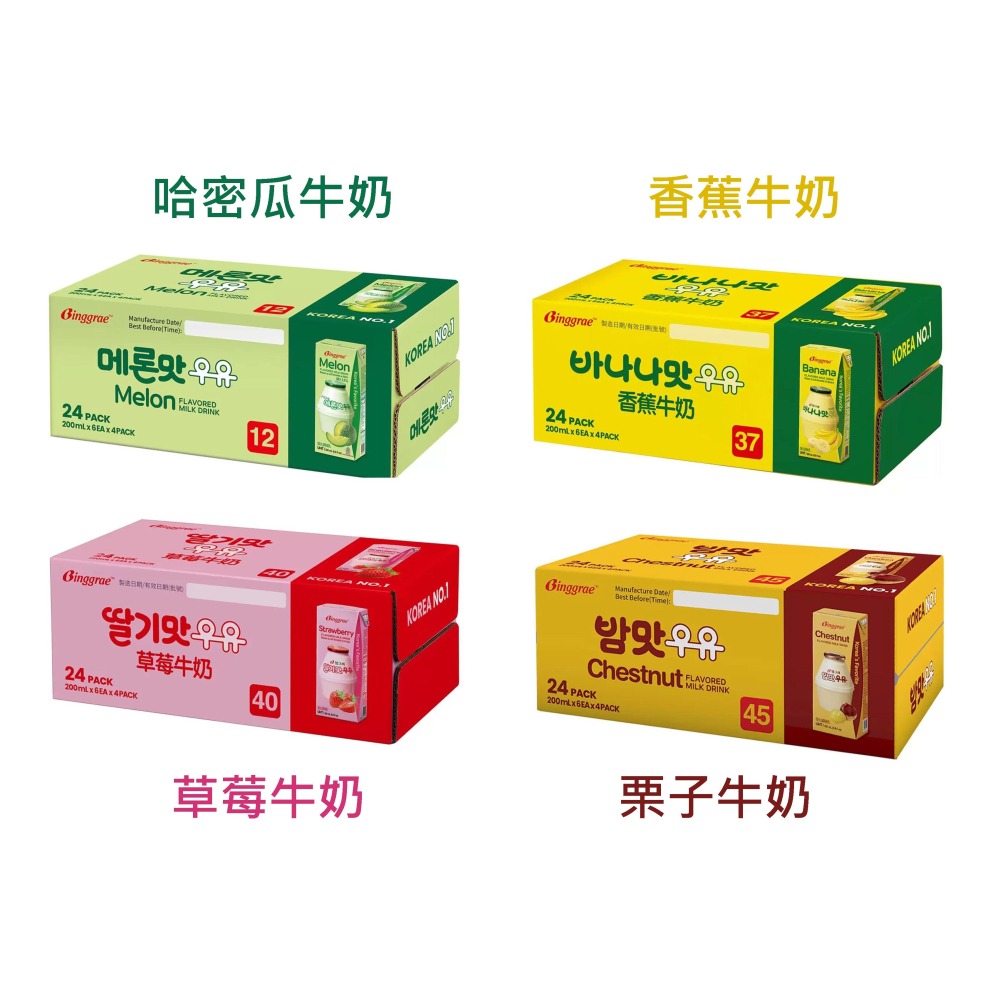 品名 Binggrae 栗子牛奶 保久調味乳 200毫升 X 24入