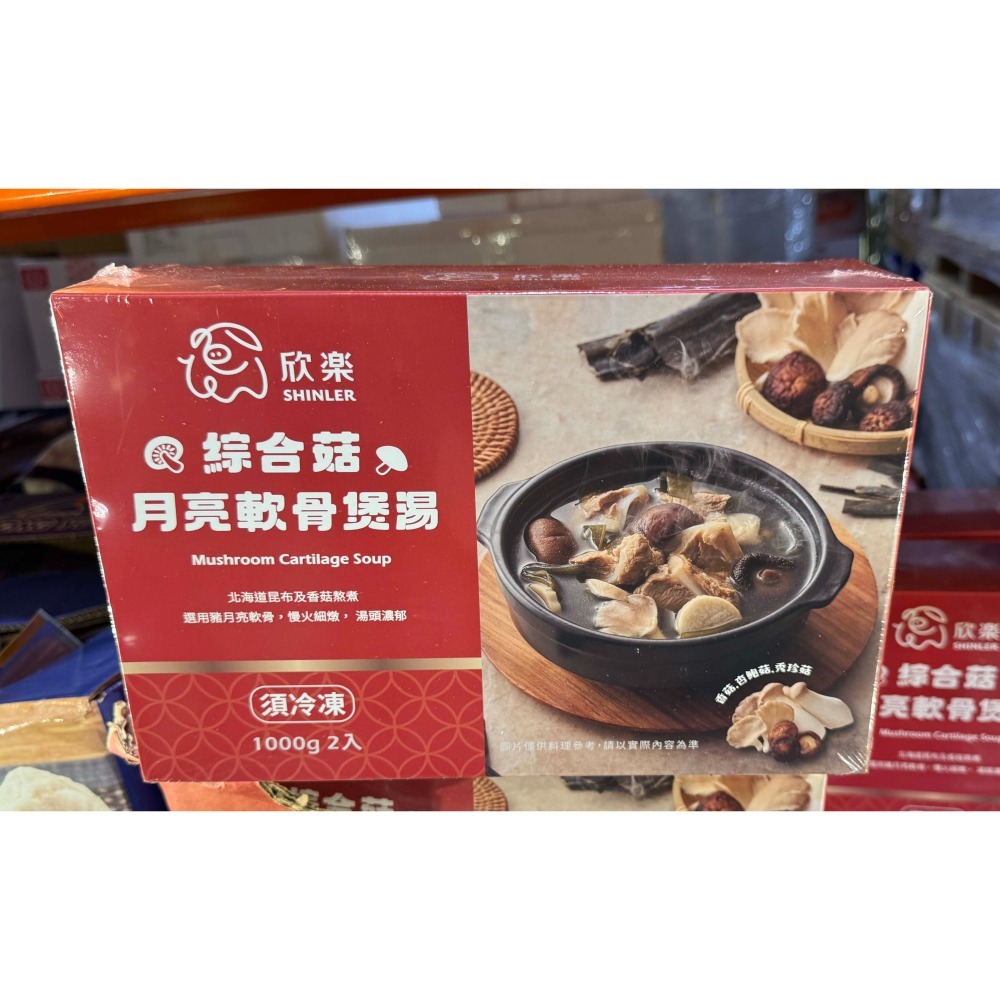 | 品名 | 欣樂 冷凍綜合菇月亮軟骨煲湯 1000公克 X 2包 |