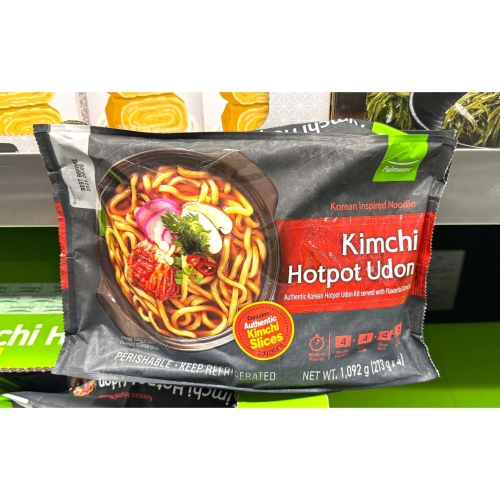 接著放入乾燥青蔥包,最後再放入韓國烏龍麵,道地韓國美食。