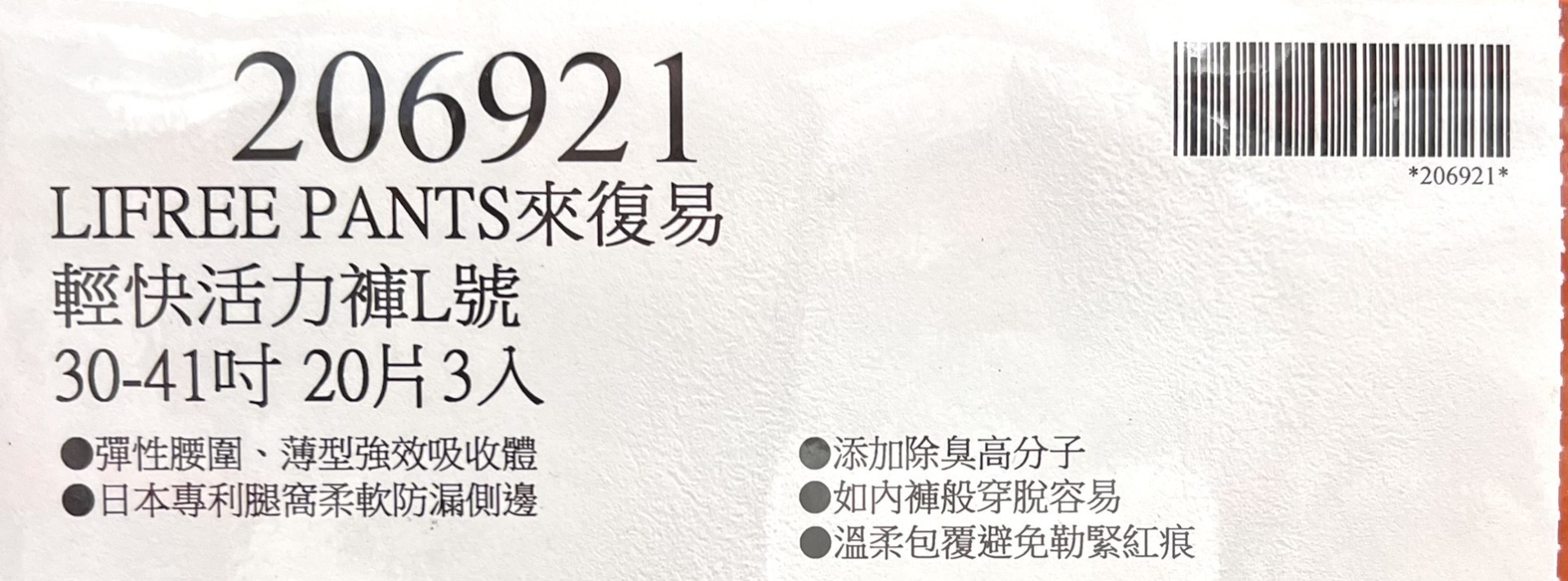 台中小蜜蜂美式賣場代購 (開發票統編) 來復易 輕快活力褲 尿布 成人紙尿褲 L號 LL號 18片/20片 3入