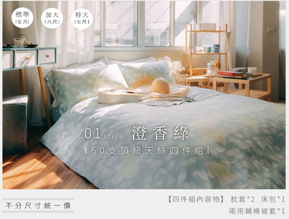 產品名稱:夏日清新生活 · 60支天絲床包四件組