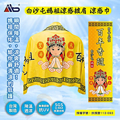 拱天宮白沙屯媽祖限量冰涼巾,乘載著媽祖的祝福,庇佑一路平安順心