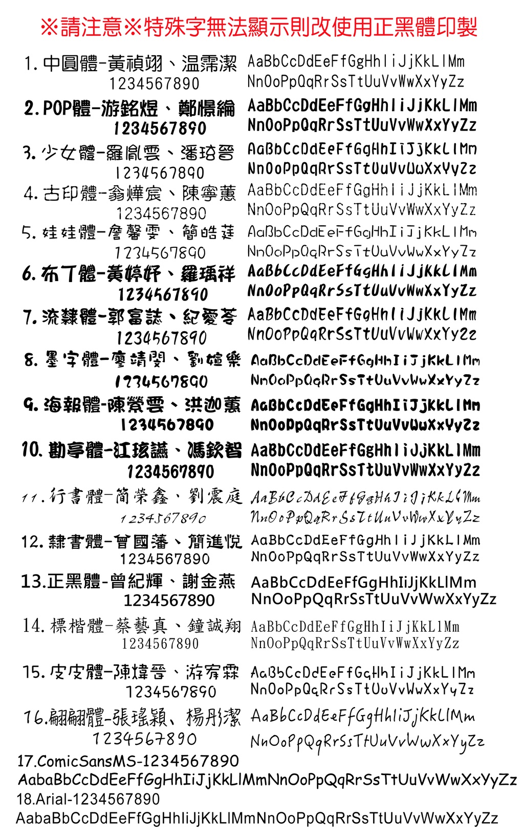 ※特殊字無法顯示該指定字體時,或未提供字體者,以正黑體印製,下單即代表同意※