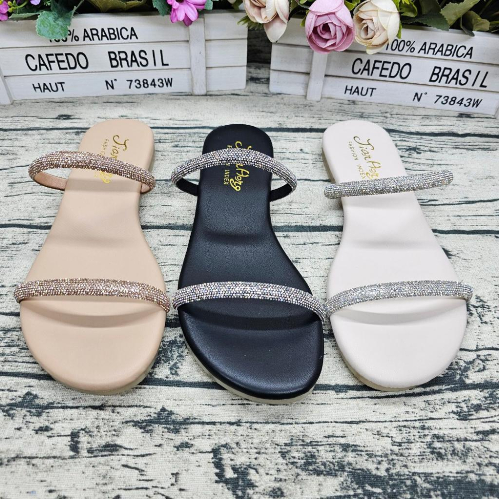 夏季必備⭐️MIT製 水鑽繩子拖鞋 平底涼拖鞋 軟墊 止滑 線條涼鞋