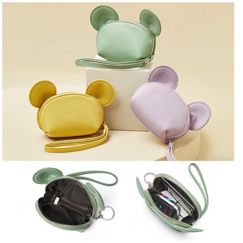 韓版質感PU零錢包 可愛米老鼠耳朵造型 卡通小錢包 鑰匙包 收納小包 附提袋 精緻做工 方便攜帶 大開口 內有隔層 百搭