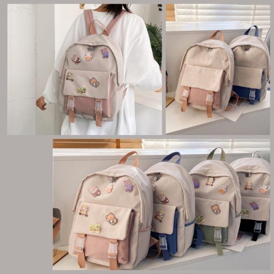 小清新撞色後背包 書包🎒高中大學生雙肩背包ins風 森系日系學院風 韓版雙肩包 肩帶可調整 多空間收納 百搭 可自行裝飾