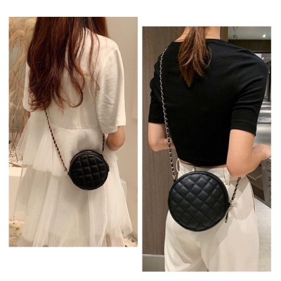 韓國 新款可愛迷你菱格小香風 鏈條包 小圓形包 圓餅包 單肩斜挎包 立體造型 PU皮 小巧 百搭 方便攜帶 氣質款