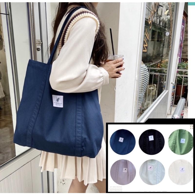 純色素色小清新帆布包簡約文藝復古森系女單肩包 托特包 百搭 慵懶時尚 多色可選 簡單logo 斜背包 側背包手提包購物袋