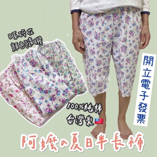 [台灣製] 中老年衣服 純棉 可愛花花7分褲 阿婆睡褲 阿嬤 睡褲 媽媽居家褲 老人睡褲 文進