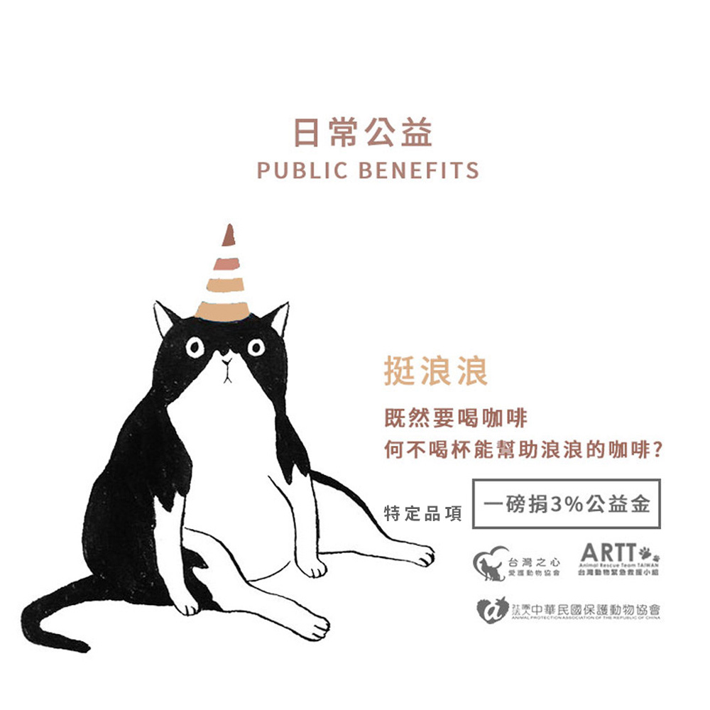 因平台手續費、豆價上漲,即日起,蝦皮賣場之濃郁深焙、曼特寧、耶加日曬、果丁丁、肯亞AA、肯亞涅里、阿卡特南果、花神,共八隻豆子「一磅組」,參與公益捐贈活動,賣場將不定期捐出上述豆子營業所得之3%,捐贈名單請至粉絲圑查詢。