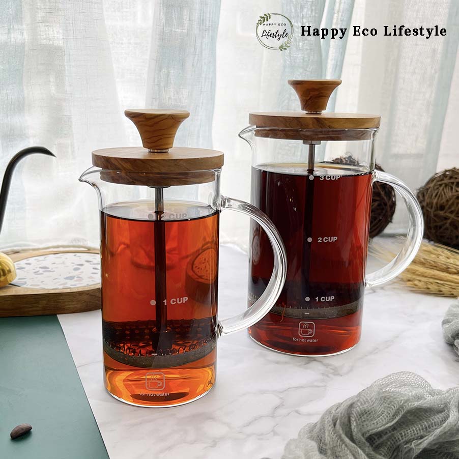 Happy Eco Lifestyle 永續品味生活|高硼矽耐高溫玻璃橄欖木蓋咖啡法壓壺☕️