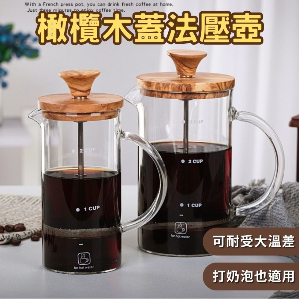 📍品名:高硼矽耐高溫玻璃橄欖木蓋咖啡法壓壺