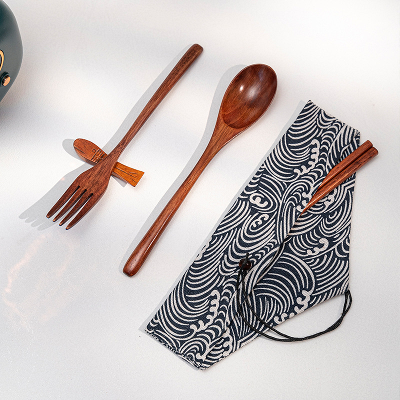 餐具主體採用自然原木拋光材質,表層光滑好清洗