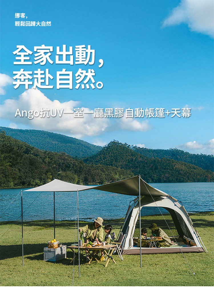 Naturehike Ango抗UV一室一廳黑膠自動帳篷+天幕3-4人