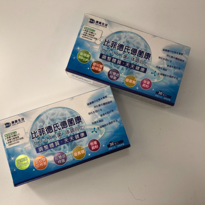 - 商品成分:樹薯澱粉、菊苣纖維、比菲德氏龍根菌BB536 (Bifidobacterium longum BB536)(玉米澱粉、比菲德氏菌、磷酸鈣)、半乳寡糖、乳酮糖、比菲德氏嬰兒雙歧桿菌(Bifidobacterium infantis)(樹薯澱粉、比菲德氏菌)、比菲德氏短雙歧桿菌(Bifidobacterium breve)(玉米澱粉、比菲德氏菌)。