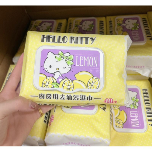 [現貨 實拍]森然小舖 台灣出貨 Hello Kitty 廚房用去油污濕巾40抽(有蓋) 廚房用品 去油污 凱蒂貓
