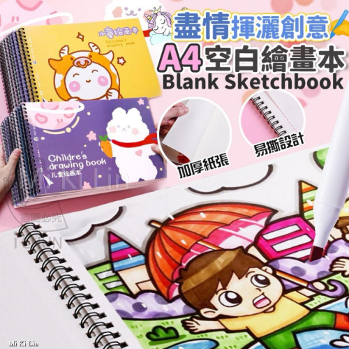 【台灣現貨】盡情揮灑創意A4空白繪畫本-4本/套 筆記本 空白繪畫本 畫本 A4 圖畫紙 線圈筆記本 塗鴉
