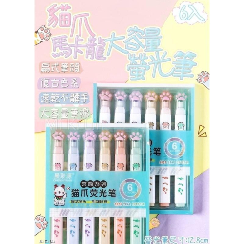 [現貨]貓爪馬卡龍螢光筆 一盒6支 螢光筆 馬卡龍 貓爪造型 螢光筆 文具用品 美術用品 CH-518