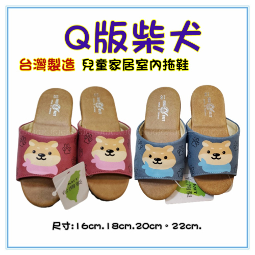 台灣製造-皮革柴犬拖鞋兒童室內皮革拖鞋
