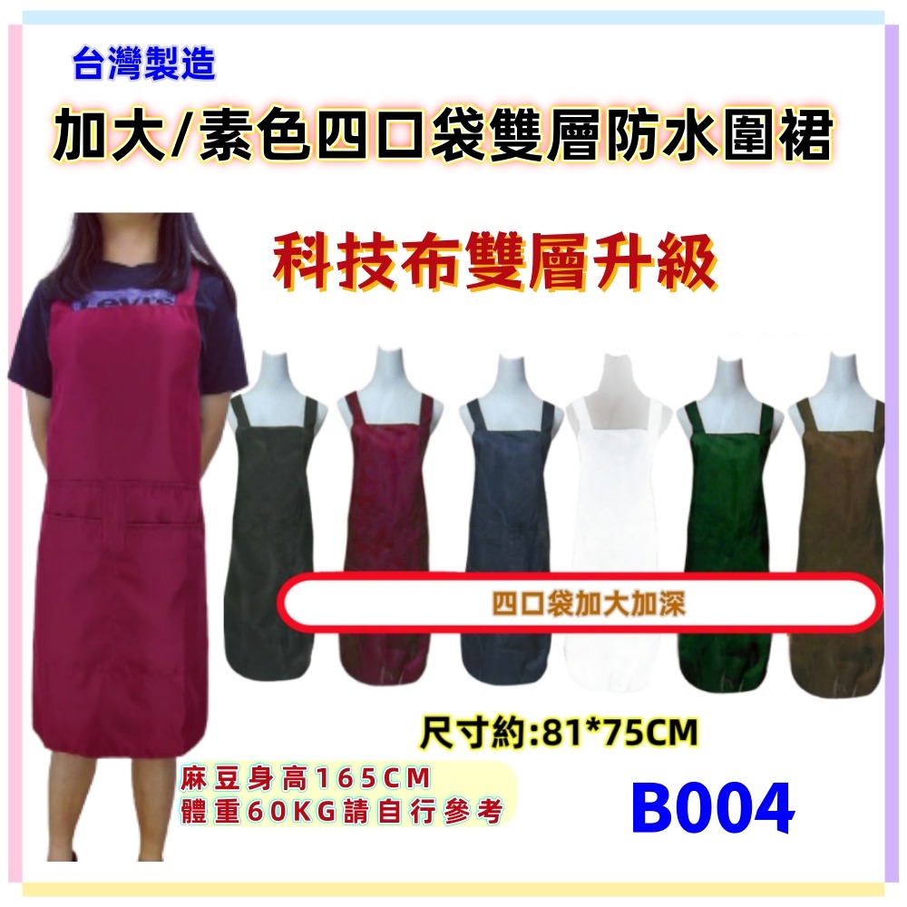 B004加大四口素色防水圍裙 100KG都可以穿呦