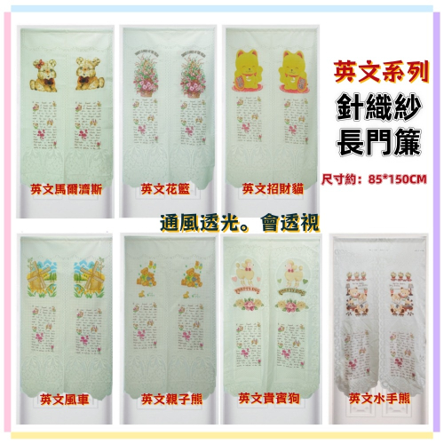 佳冠附發票~英文系列針織紗長門簾 歐式長門簾可當風水簾 通風透光 尺寸約85*150公分,壁簾 櫃簾 不附門簾桿