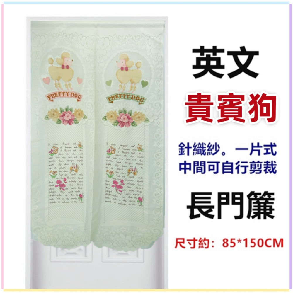 佳冠附發票~英文貴賓狗長門簾 歐式長門簾可當風水簾 通風透光 尺寸約85*150公分,壁簾 櫃簾 不附門簾桿