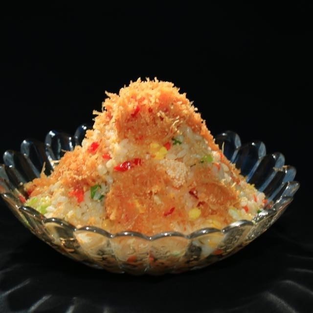經過細工慢活的拌炒,干貝絲吸收飛魚卵的精華,口感更顯得精緻美味。
